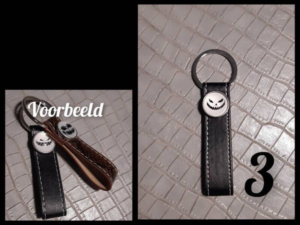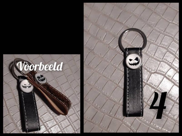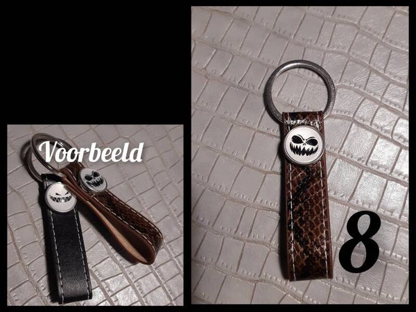 Sleutelhanger met vervangbare drukknoop.
