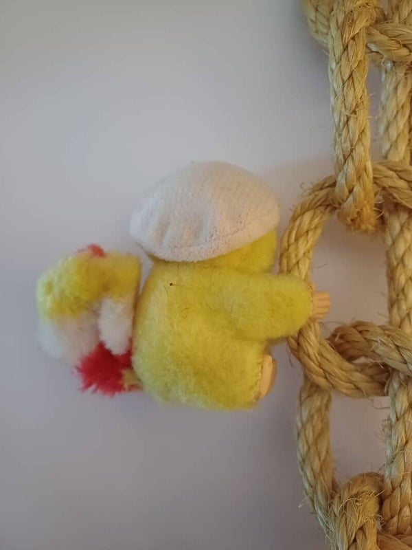 Vintage Monchhichi Eekhoorn Geel Knijpbeestje/poppetje jaren 80.